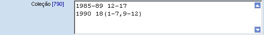 Este exemplo indica que os volumes de 12 até 17 que correspondem aos anos de 1985 a 1989 estão completos)