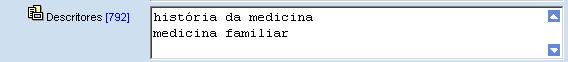 Palavras chaves que representam o conteúdo temático do periódico. Havendo necessidade do registro de mais de um descritor, estes deverão ser transcritos um em cada linha da caixa de texto do formulário.